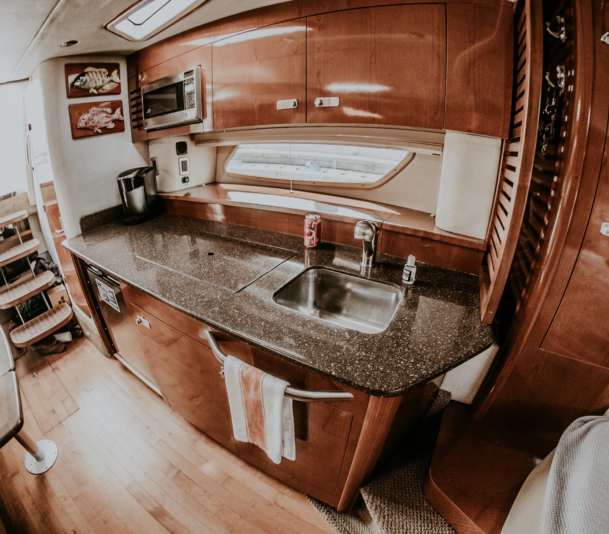 Spacious Cockpit: Wraparound seating, wet bar, and built-in grill – perfect for entertaining.
